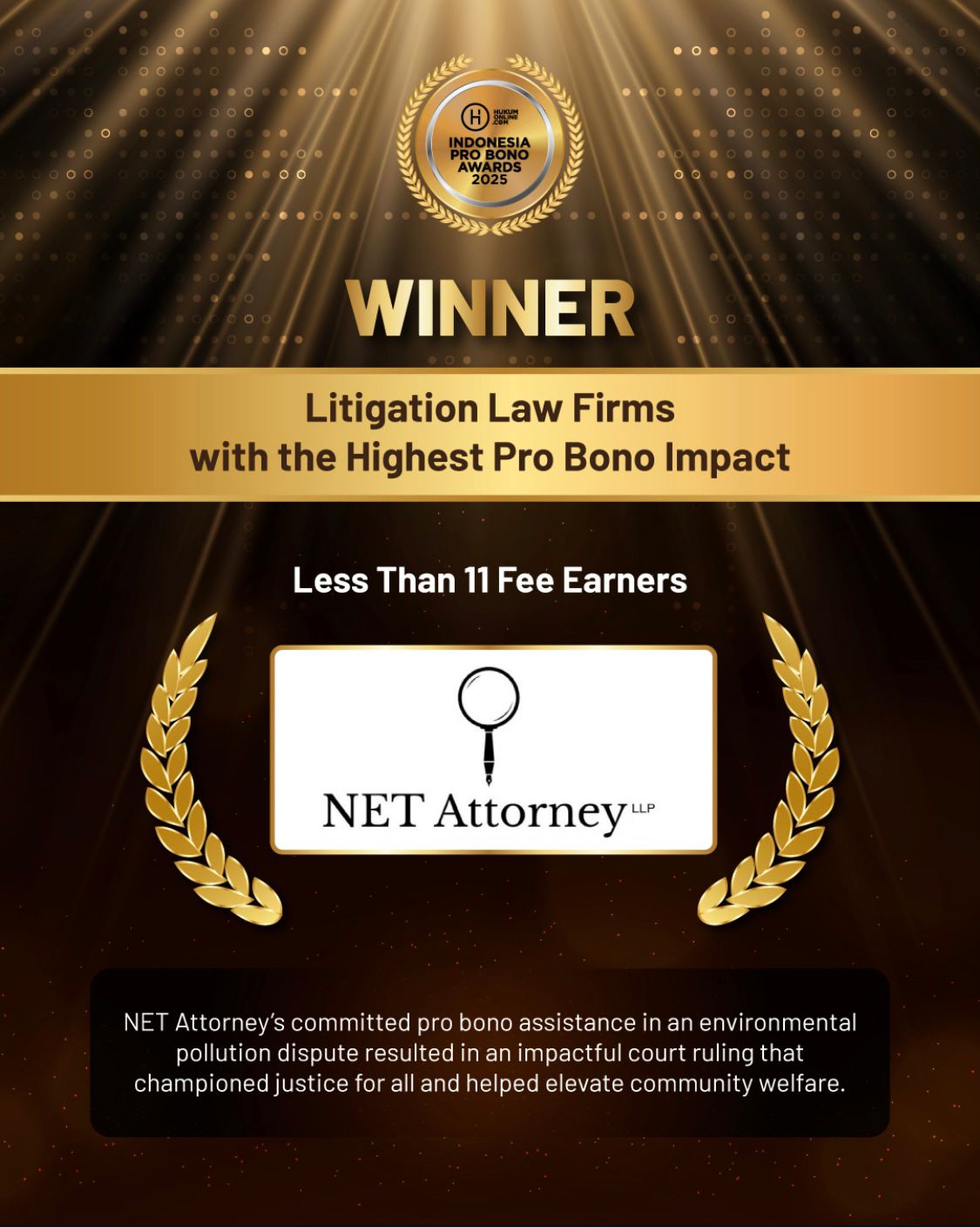 NET Attorney Law Firm Sukses Menjadi Pemenang Indonesia Pro Bono Awards 2025